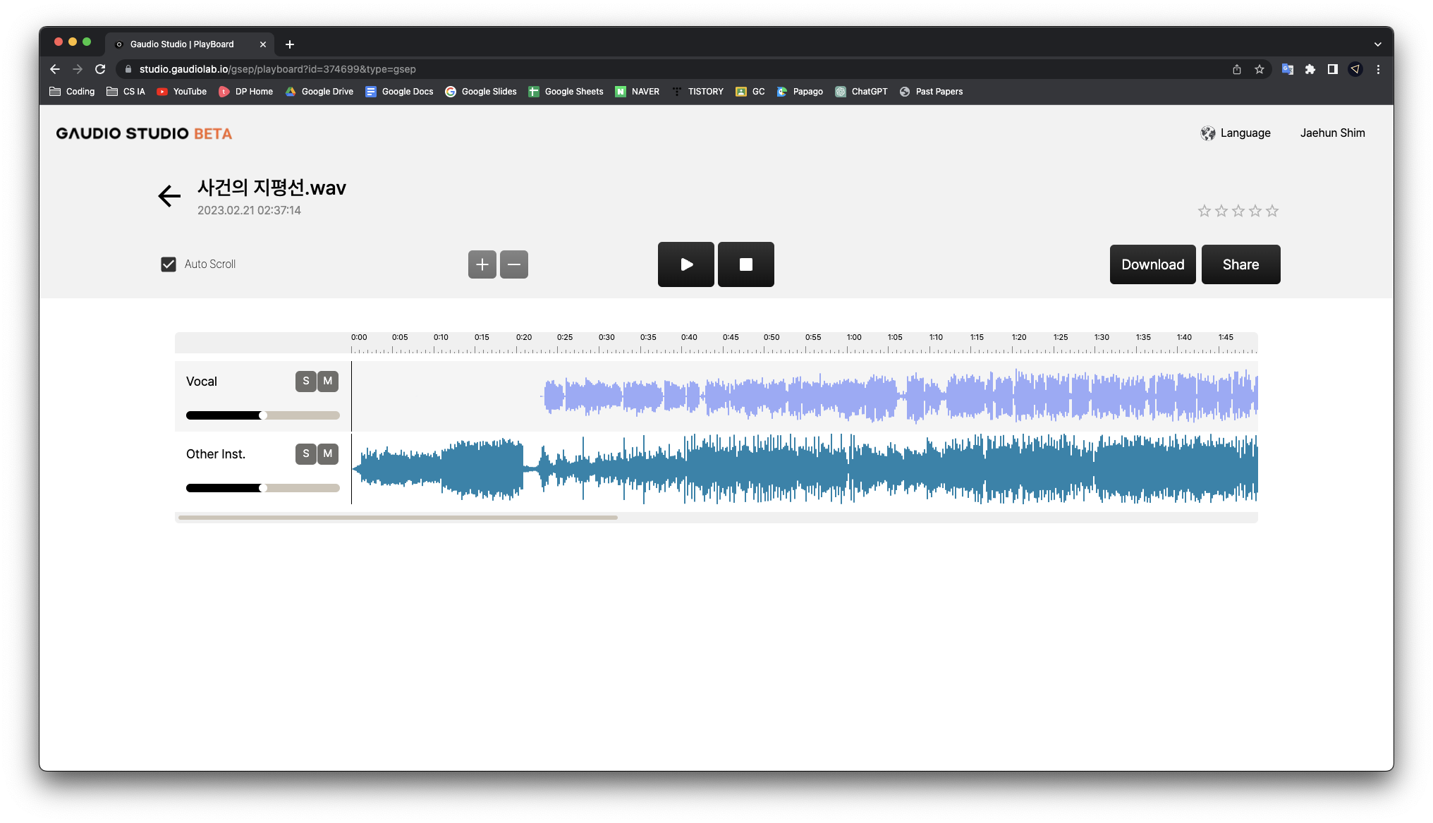 아래 2개 사이트중에 원하시는 사이트에서 음원 분리를 해줍니다.
