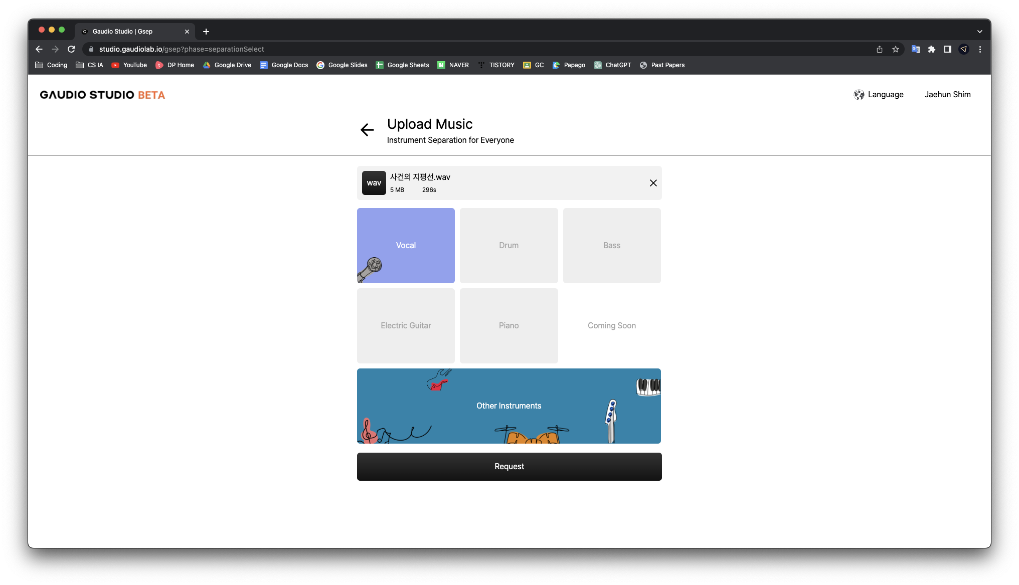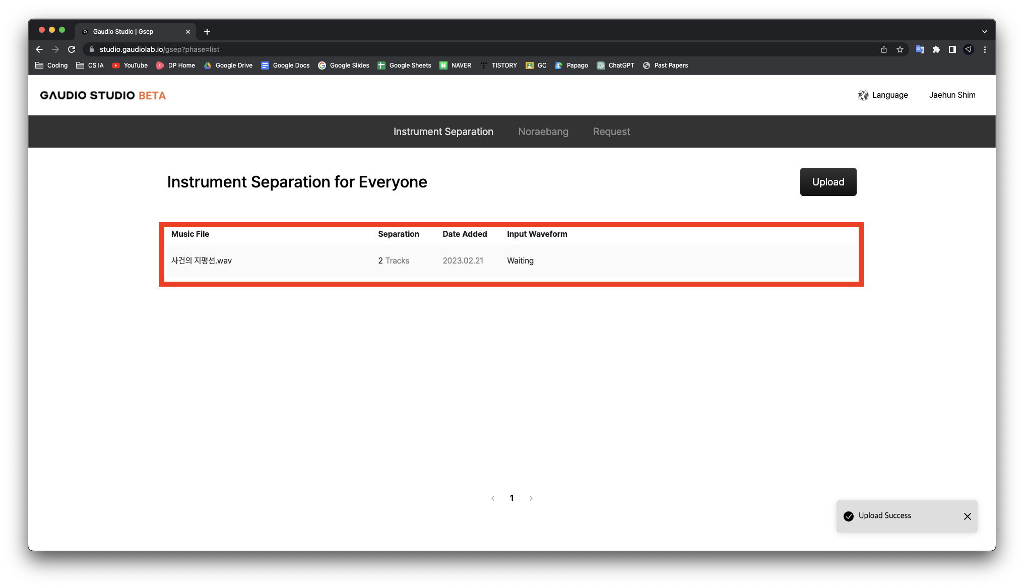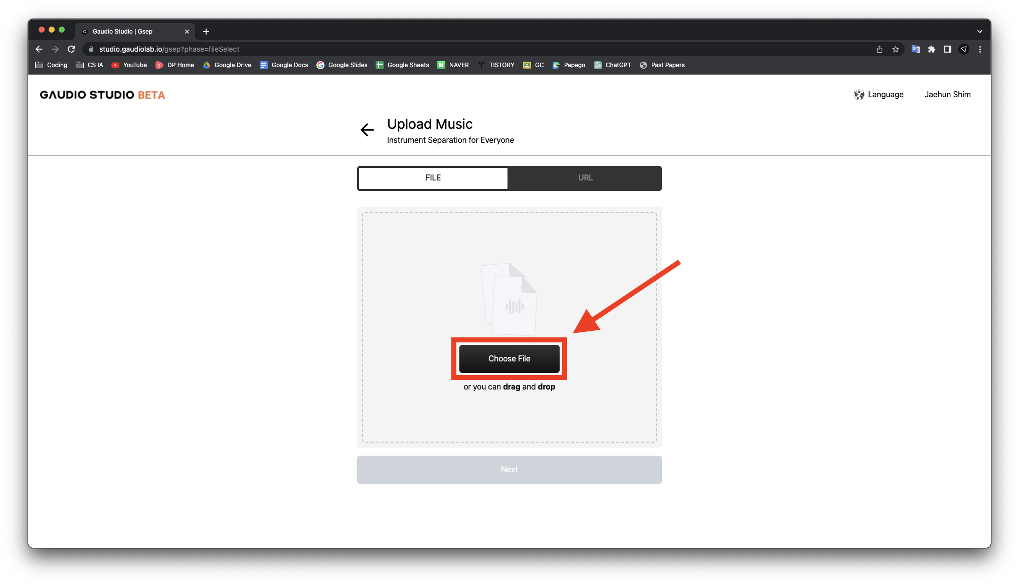 여기서 파일을 드래그 & 드롭 하시거나 Choose File 버튼을 눌러서 음원 파일을 선택 해줍니다.