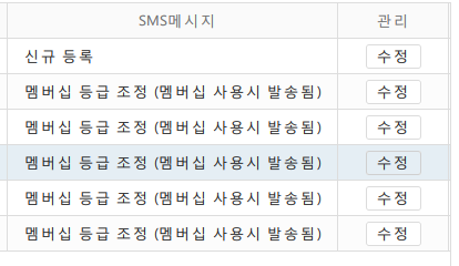 멤버쉽 등급에 대한 발급쿠폰, 방문회수, 등급 등은 오른쪽 끝에 수정하기 메뉴를 통해서 각각 변경이 가능합니다.