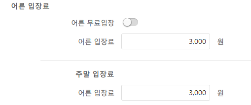 어른 입장료는 1개만 설정이 가능합니다.