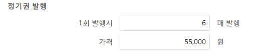 (가격과 매수는 정기권 발급 화면에서 수정이 가능합니다.)
