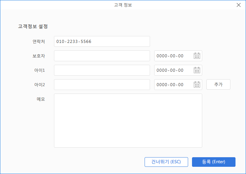 신규등록하는 고객의 이름과 생일을 입력할 수 있습니다.