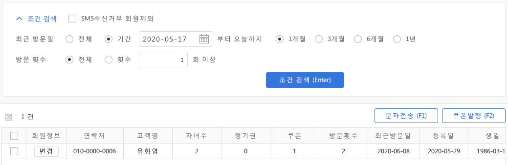 최근 방문일이나 방문 횟수를 기준으로 고객을 찾을수 있습니다.