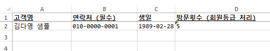 엑셀불러오기를 사용하는 경우 신규회원에 대한 일괄 처리만 가능합니다.