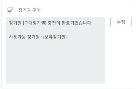 체크가 되어 있으면 스템프적립 또는 정기권 구매시 자동 전송이 이루어 집니다.