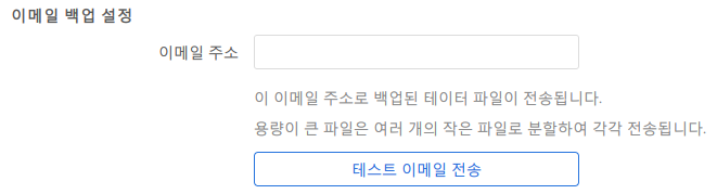 미리 설정된 이메일을 설정하여 둔경우 해당 이메일로 백업데이터를 전송 할 수 있습니다.