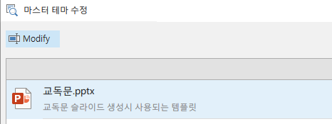 변경할 테마를 선택하고 Modify를 눌러서 변경을 하거나 더블클릭을 하면 PowerPoint를 실행하여 바로 변경이 가능합니다.